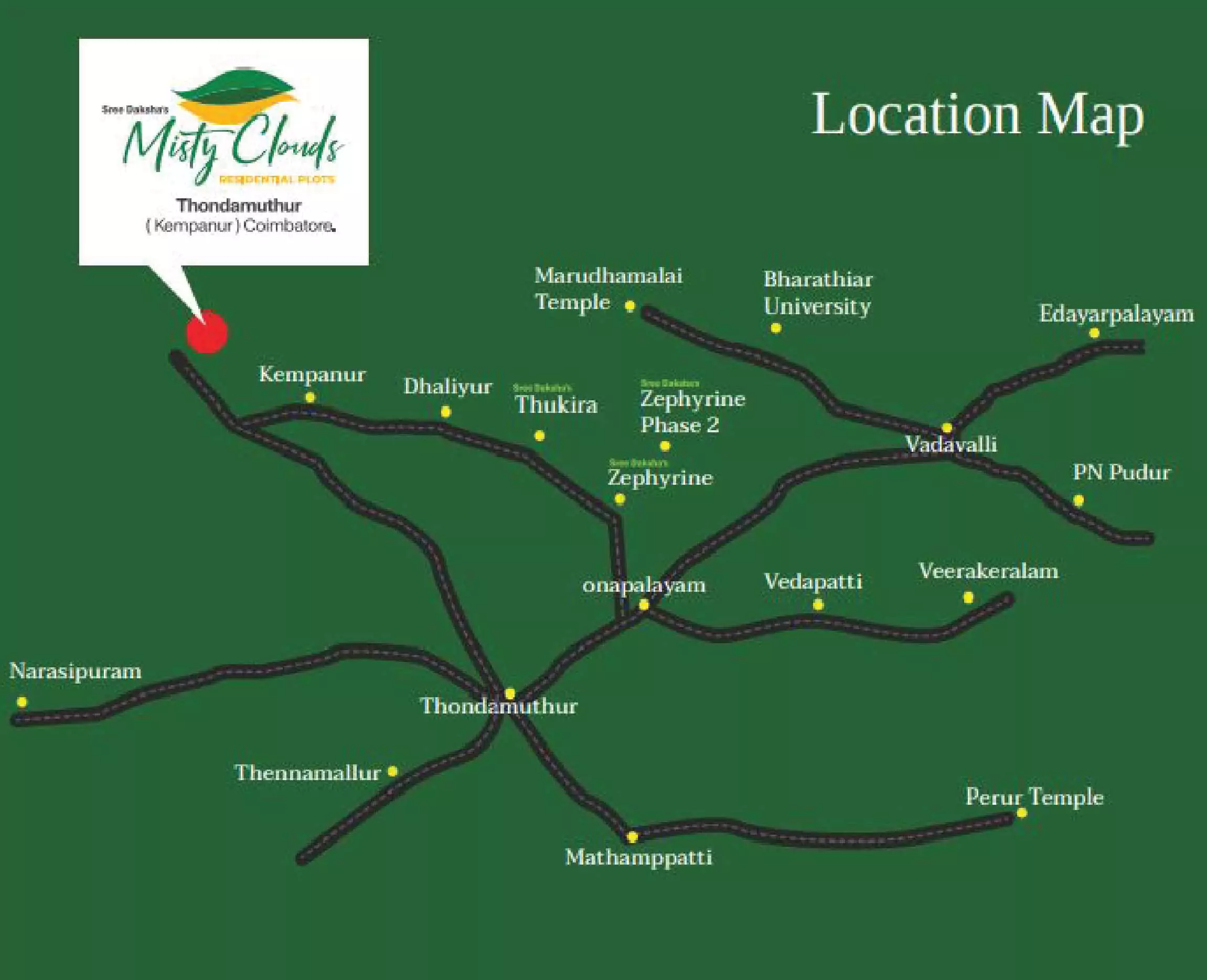 Life in Misty Clouds, means having the world at your feet – greenery at your doorstep, serenity in the surroundings, and divinity within reach.Where community meets culture and tranquillity meets convenience, among a landscape of sylvan settings, just at the foothills of Western Ghats. Plots that will have your investment appreciate manifold in quick time or build your dream home where you will enjoy an effortless lifestyle with everything, the family could ever need close at hand.